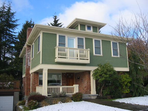 Ravenna HomeSeattle, WashingtonThe owners envisioned doubling the square footage of this house to make rooms for everyone in the family. This gave us the opportunity to seamlessly change the home’s character from a modest 1950’s rambler to a Classic Seattle Box by adding traditional elements such as a gracious front porch, balcony, eaves and a dormer. The existing main floor was also opened up to expand the kitchen, add bathrooms, and transform dining and living rooms to suit the growing modern family.
